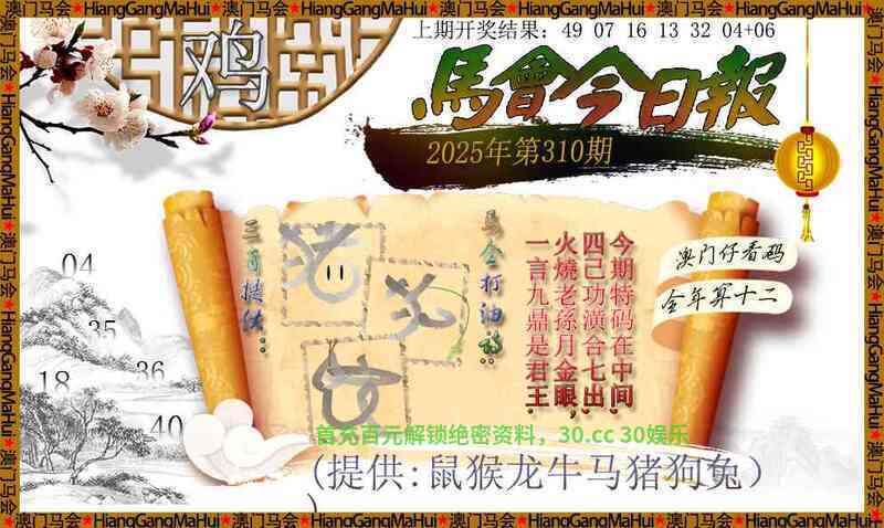 308期:〖九肖〗猪羊龙蛇猴鸡牛马