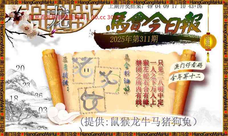 311期:〖九肖〗马羊鸡猴狗猪虎